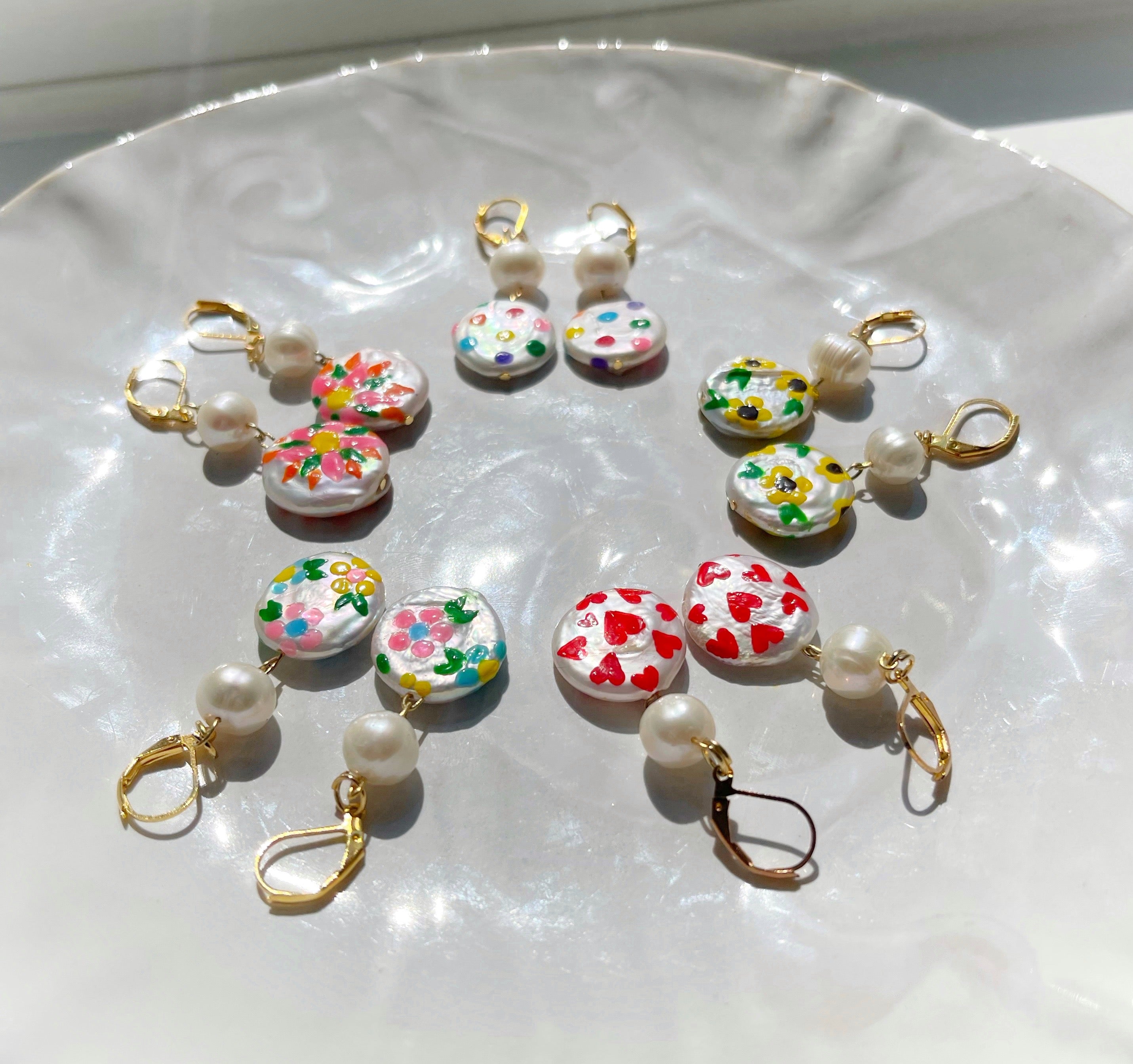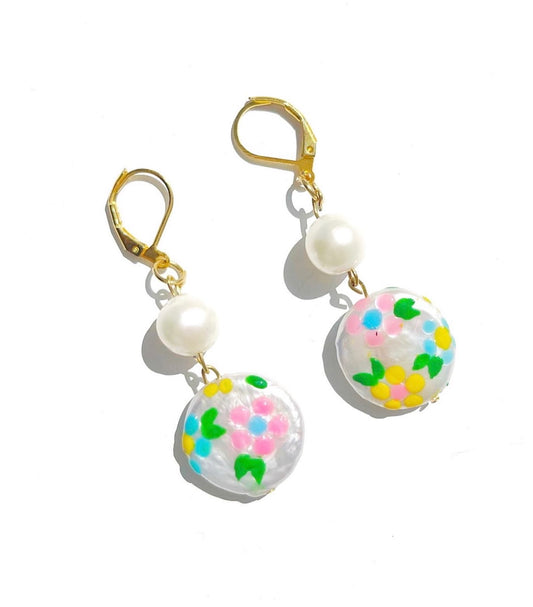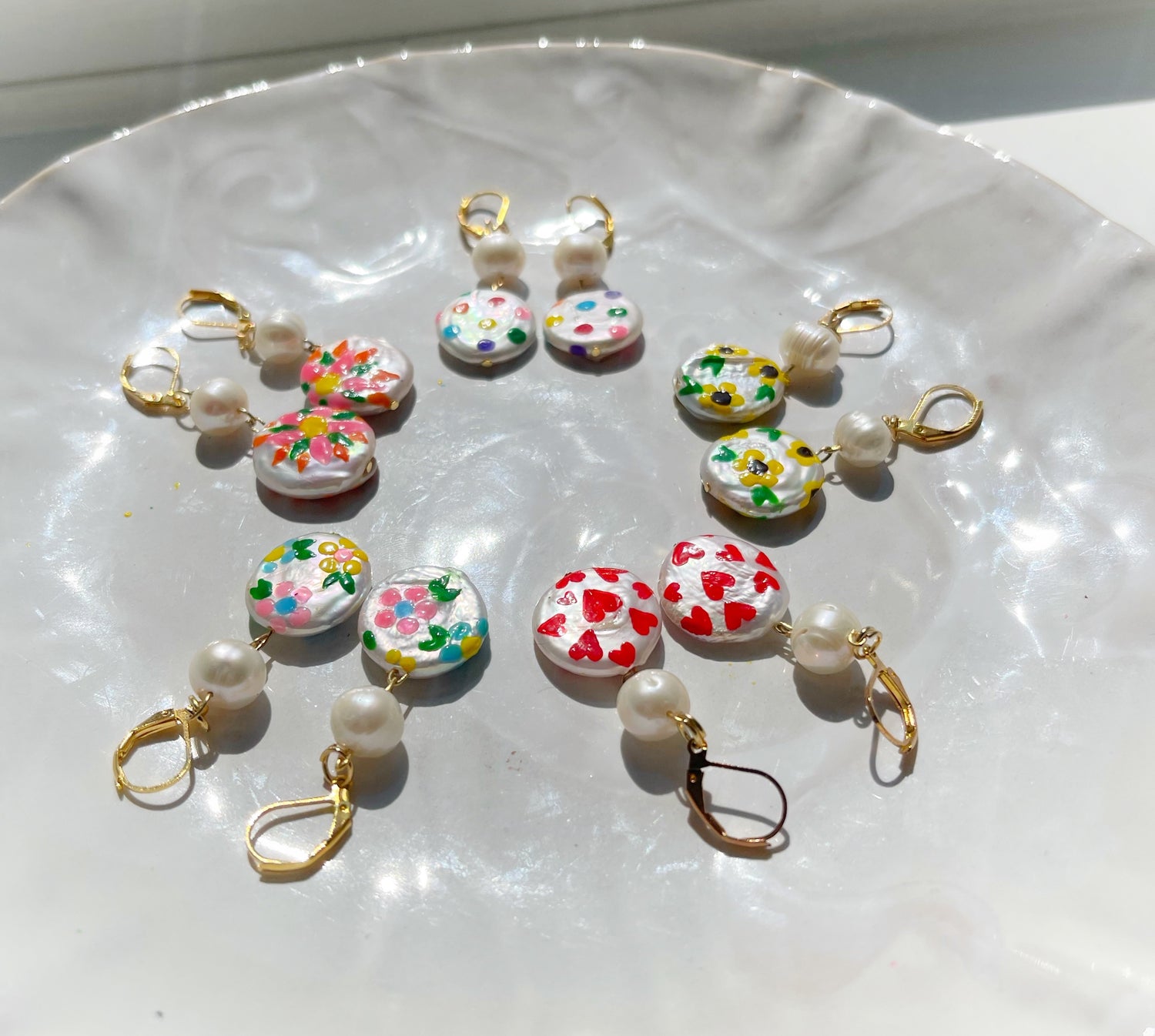 Colourful Daisy Painted Freshwater Pearl Earrings