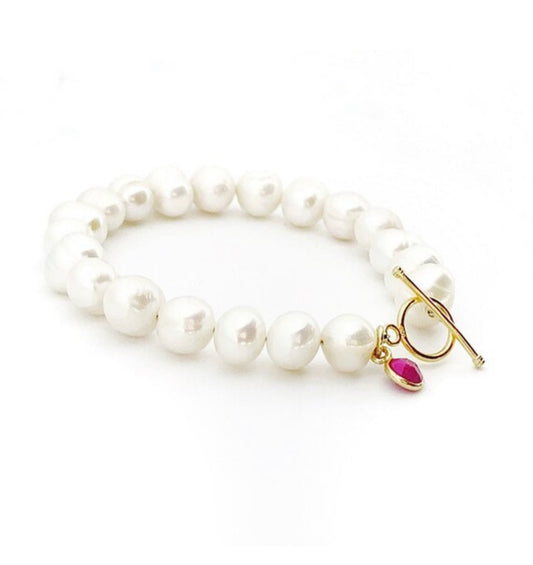 Birthstone Charm Bracelet, Genuine Natural Freshwater Pearl Bracelet, Birthday Gift for Mum, March Birthstone Jewelry, April Birthday Gift