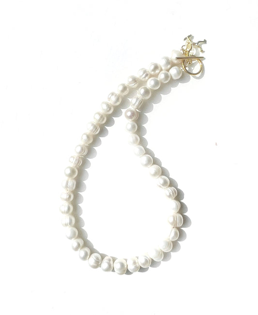 Angel Necklace Charm Necklace Freshwater Pearl Gold Charm Necklace with Gold Angel Charm, Unique Pearl Jewelry, Chunky Charm Necklace Gold